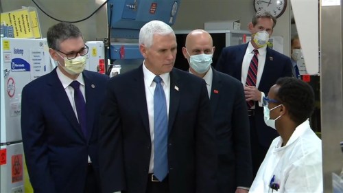 Mike Pence visited the Mayo Clinic today. The Mayo Clinic requires staff and visitors to wear a protective mask during the COVID-19 pandemic. Mike Pence refused. We see him in a group of visitors, the only one not wearing a mask.