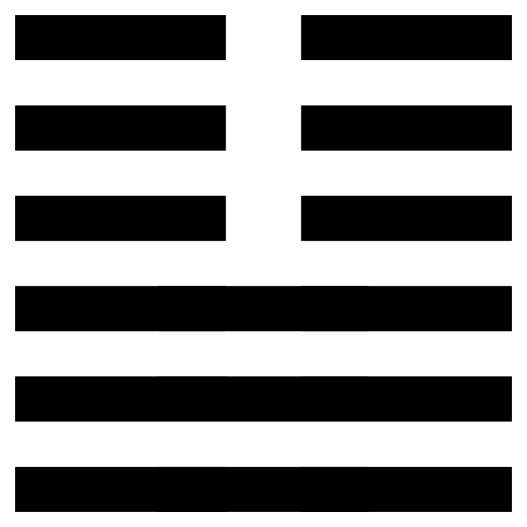 In this gua, the significance of the union of Heaven and Earth is employed to display the importance of union among people. When people communicate sincerely and truthfully, harmony is created, and things will be achieved easily and smoothly. In Chinese, this situation is called Tai, Advance. The Yao Text of this gua is extremely difficult to understand. Different scholars have varying ideas. To the Chinese, the opposite of Tai is Pi. To go from Tai (Advance) to Pi (Hindrance) or vice versa is a natural law, as is the waxing and waning of the moon. The wise prefer to live in harmony with the laws of Nature. Be content with one’s fate, and never blame Heaven or others.