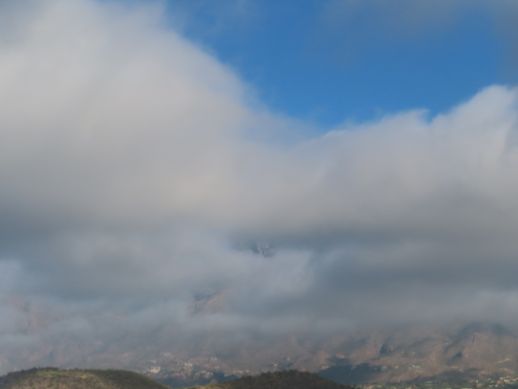 Bob: The mountaintops have disappeared this morning.