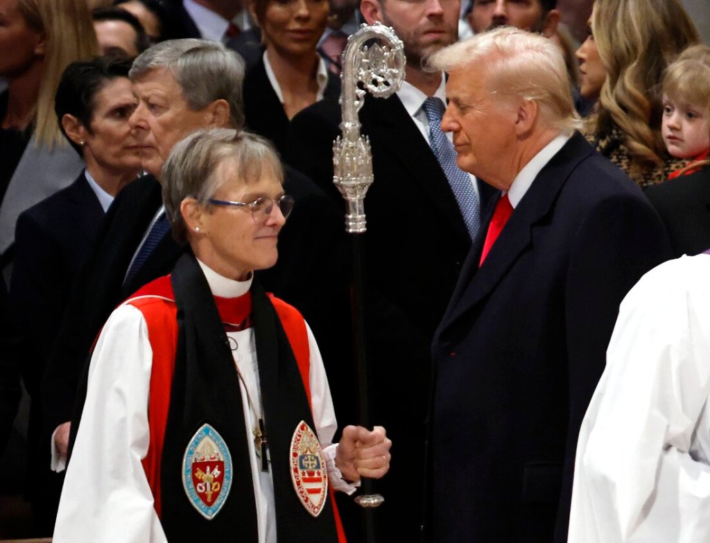 Rt. Rev. Marian Edgar Budde, Episcopal Bishop of Washington, presided over the National Prayer Breakfast, giving the sermon at the National Cathedral on Tuesday. Trump and many officials were in attendance.