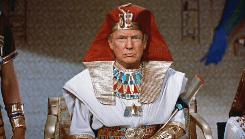 Along with No Kings, we may also add No Pharaohs. Trump does not want to just be the ruler of America. He wants to be emperor of a global empire. Just as Pharaoh did. And just like Pharaoh, Trump considers himself, as do some of his followers, a divine ruler.