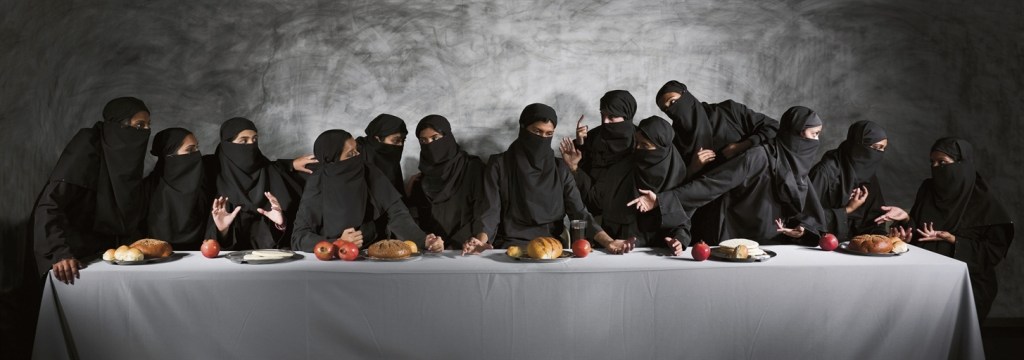 Last Supper – Gaza (2008) is the most celebrated piece by Indian artist Vivek Vilasini. The large photographic print (52 × 144 inches) is based on Leonardo da Vinci’s Last Supper, substituting thirteen widows from Gaza for Jesus Christ and his apostles.