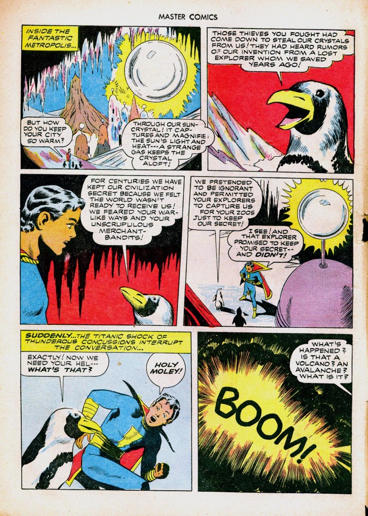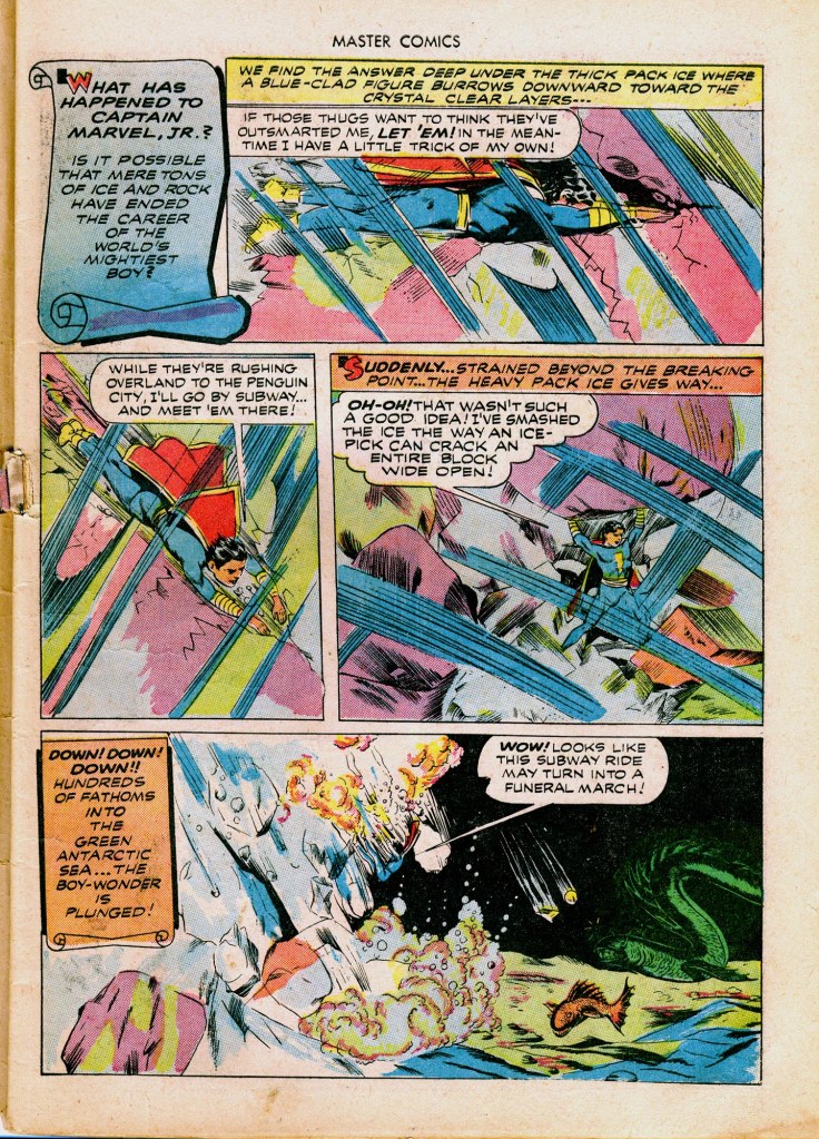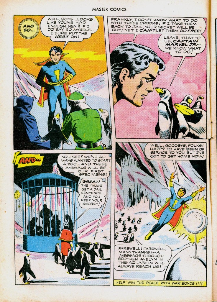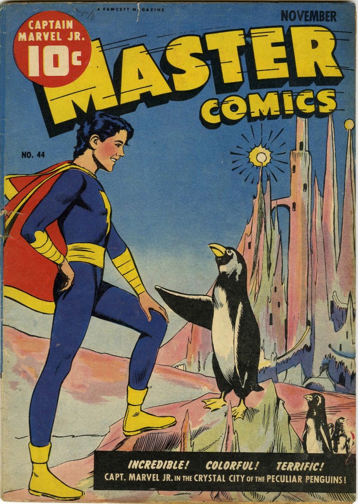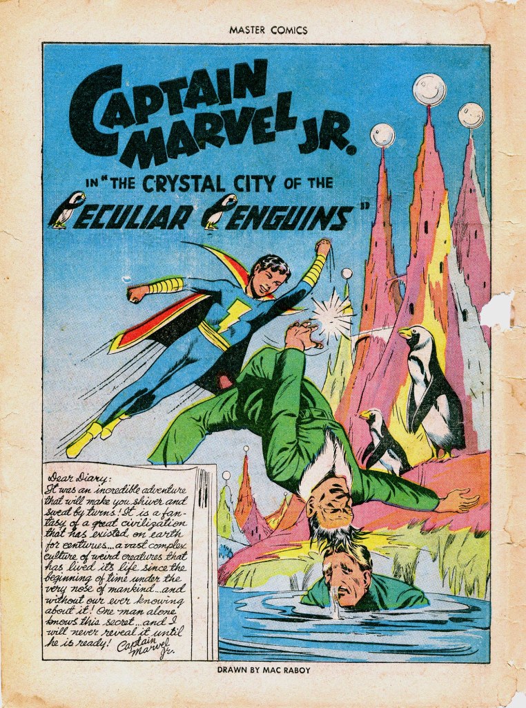 An issue of Master Comics from 1943 features the story “Captain Marvel Jr. and the Crystal City of the Peculiar Penguins”.